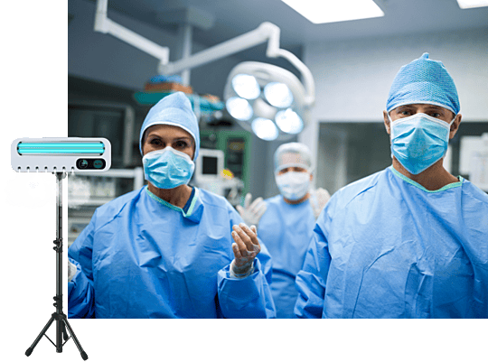 Together, they provide uniform air and surface disinfection in enclosed rooms after manual cleaning.